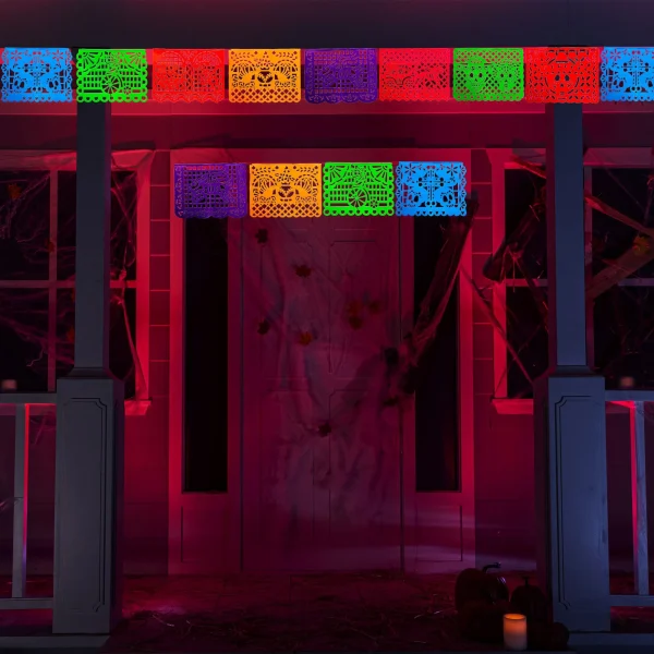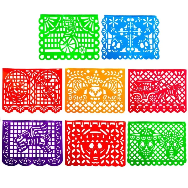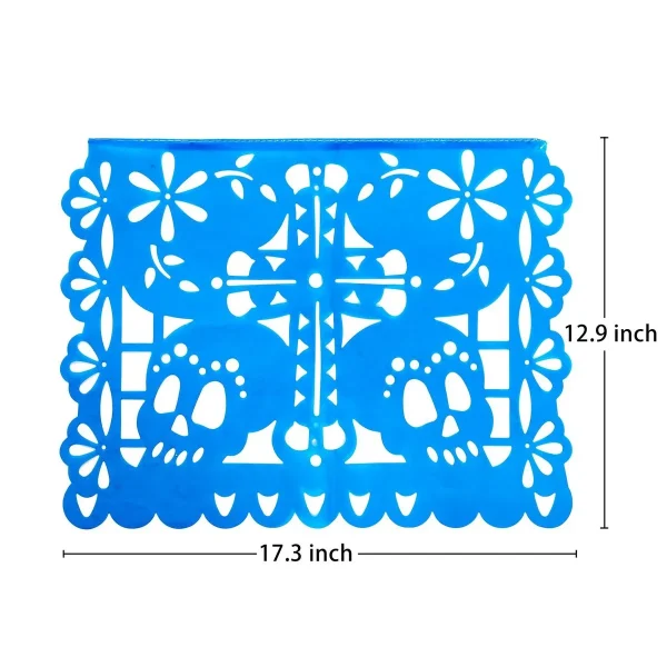 • These banners are made of plastic with a hollow-carved design that features “Day of the Dead” figures in 8 multicolor patterns. These banner decorations definitely look vibrant and attractive which will make your Day of the Dead celebration an unforgettable experience.