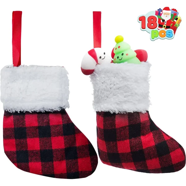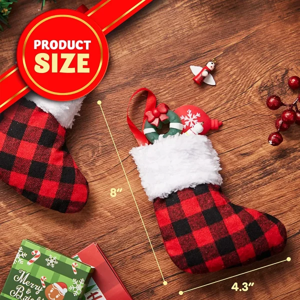 • Our Red And Black Buffalo Plaid Christmas Stockings set includes 18 pcs of Red and Black Plaid Buffalo Stocking Christmas Stockings measuring 5.5”. Abundant quantity and traditional design will be loved by most people, a wonderful choice for Xmas indoor decorations!