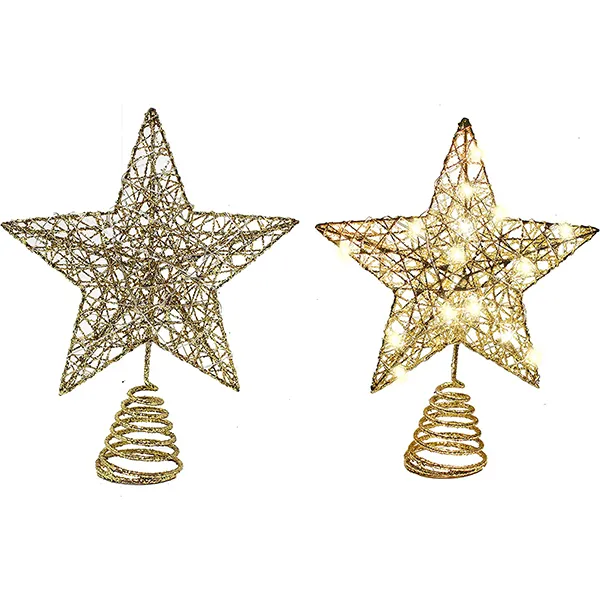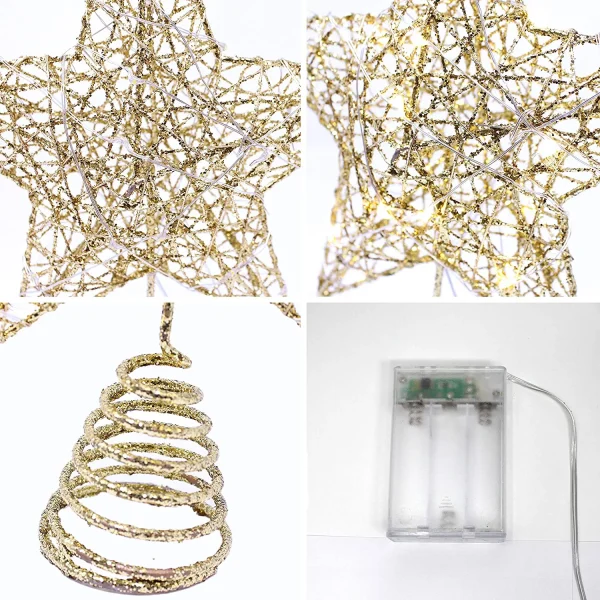 • Lighted Christmas tree toppers come in perfect sizes 7.9inch * 7.8inch. Brilliant shining with the gold glitter all covered the toppers, give you the best mood for Christmas day. Perfect fit for 6ft to 7ft Xmas tree.