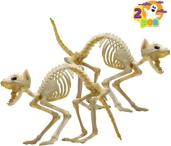 A heavy-duty molded Halloween cat skeleton comes with a realistic appearance. This menacing cat skeleton has a moving jaw and a bendable tail. It looks so realistic that it’s sure to give your guests a fright! This skeleton cat prop is perfect for Halloween and fantastic for any horror-themed celebration. This sinister skeleton will look great and will provide your victims with a fun scary experience at Halloween home haunts. Whether you’re throwing a Halloween party or just trying to scare your neighbors, this frightening skeleton cat is sure to be a success. These spooky cats are perfect for decorating around the house during all of October’s festivities.