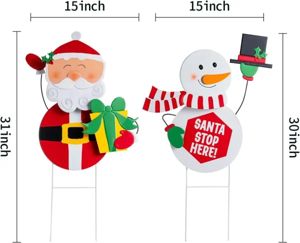 To display, simply insert two stakes into each metal yard signs and press them into the ground. Stick these signs on your lawn signs display them, or use them as decorative photo props at the party. When inserted into the ground, it will remain stable. In the Christmas snow, you can plant it in your garden. They’ll make a lovely landscape for your Christmas outdoor decorations, adding a special touch to your festive home decor. Each snowman and Santa stand 20 inches tall, and the metal stake stands 11.5 inches tall. There are no tools or specialized skills required. During the busiest and most wonderful time of the year, our pathway sign takes little time to set up!