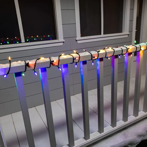 Both indoor and outdoor decoration is made easy with these adaptable multicolor Christmas string lights. Your Christmas trees, mantels, railings, outdoor walks, and porches may all benefit from their festive hue. These Christmas lights have a traditional appearance thanks to the sturdy white plastic sockets, and the lovely display that the green wire creates makes them ideal for your holiday party or get-together. Three sets of 150 bright incandescent Christmas lights are included in our green wire string lights. Each pair has a length of 38.7 feet with 3-inch spacing. 60.2-watt conventional 120-volt domestic power supply. You may link four sets end to end. comes with 3 fuses and 9 additional bulbs.