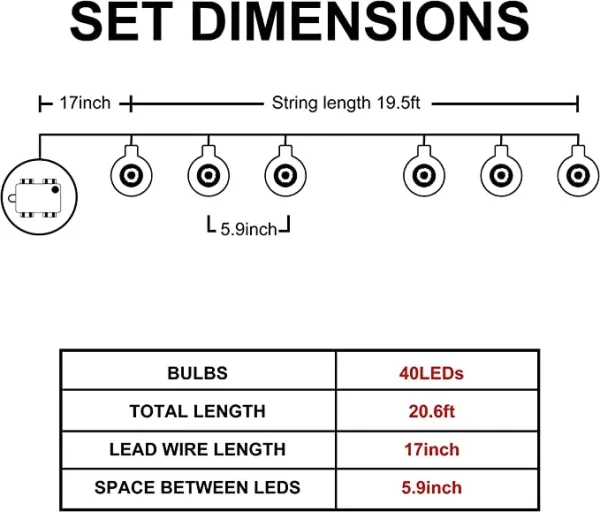 • Comes with remote control with 8 lighting modes: Combination, in waves, sequential, slo glo, chasing/flash, slow fade, twinkle/flash, and steady-on.