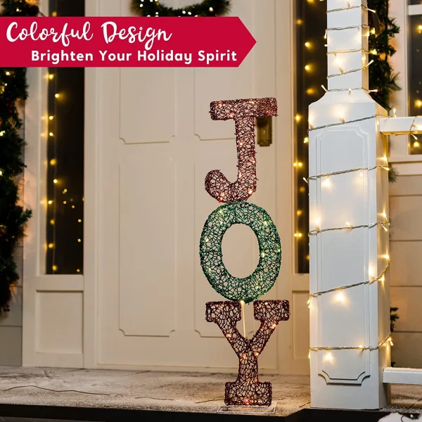 - Our own unique stacked joy letters design of Christmas yard light is easy to set up. These are pre-wired frames and very durable. Perfect for indoor/outdoor use.