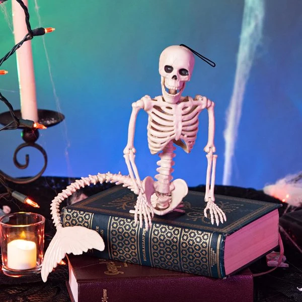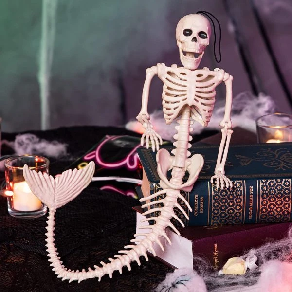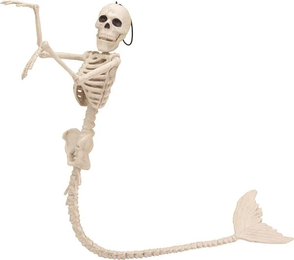 • Add this mermaid skeleton to a spooky Halloween scene! A great addition to your Halloween decorations, you can add it to your porch display and pose it in different settings or spook your Halloween party guests inside.