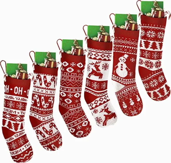 If you want to add some style to your Christmas decorations, these knit Christmas stocking are the best Christmas gift for you. They are made of premium quality materials and are handcrafted with care. The stockings are big and can hold as many gifts as you want. They come in six different designs: reindeer, snowman, tree, snowflake, candy cane, and Santa Claus. The patterns are knitted on both sides so that you can use them as Christmas gift bags or decorate your home with them. Each stocking has 2 holes at the top. One large enough to fit over a fireplace mantel or wall hook, and another small enough to hang on a small hook in your home or classroom. This makes it easy to enjoy both indoors and outdoors during the holiday season!