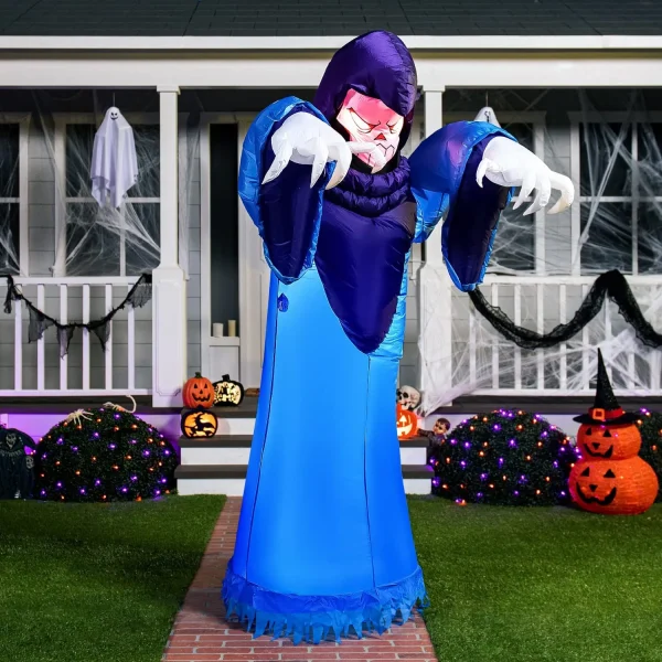With its distinctive design, this Inflatable Warlock Decoration is prepared to uphold the reputation of the warlock. Blue, white, and purple are among the vibrant color choices that prevent the conjurer from disappearing too far into the terrifying shadows. The inflatable warlock’s torso is lit from within, maintaining the appearance of his menacing height and piercing eyes. The meeting will be less threatening because neighbors out for a stroll or participating in a Halloween-themed trick-or-treat expedition will be able to see them coming. The supplied tethers ensure that this one-of-a-kind fellow will be around for the entire Halloween season, despite the fact that a warlock would want to move around freely to spread his evil powers.