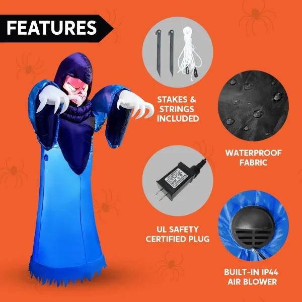 • 8 Feet Tall Inflatable Halloween Spooky Warlock. Spooky Convenient Halloween Spooky Warlock decoration