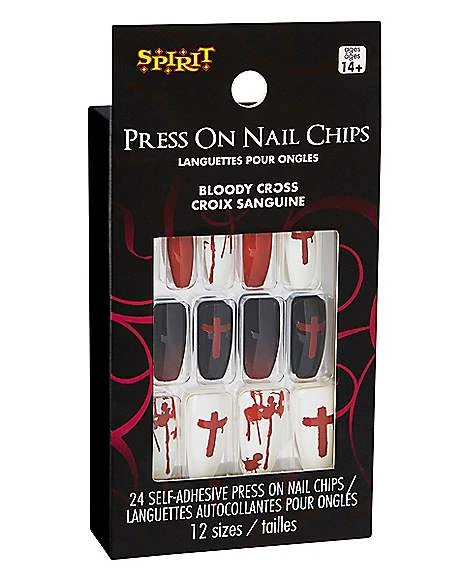 Embrace your dark side with these bloody cross press on nails. These 24 nails feature red, white and black backgrounds, and will ensure a bloody good time however you arrange them. They’re the perfect addition to any scary Halloween costume.