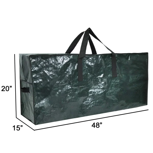 • Christmas tree bags for storage measure 48” x 15” x 20” (lxwxh) and wreath bag measure 30” in diameter and 7” in height. Fold flat when not in use to save space