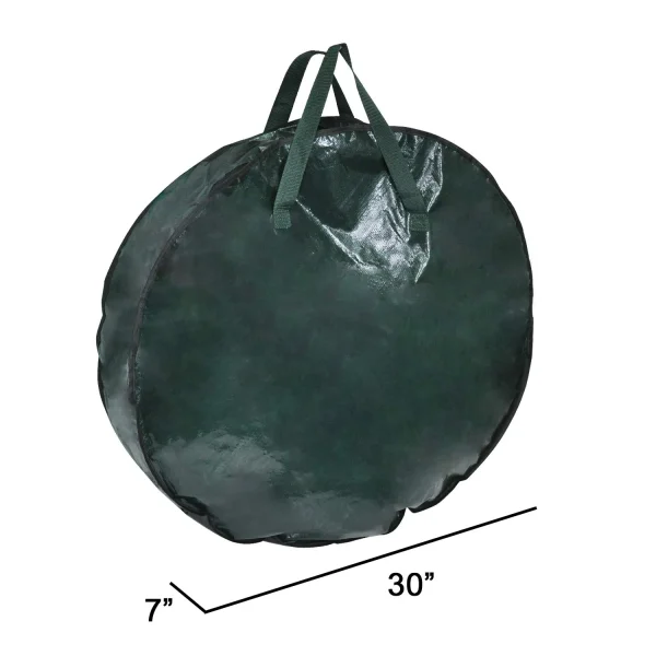 The Christmas tree storage bag is made of 6 Polypropylene, which is strong, long-lasting, and water-resistant. Your holiday decorations will be protected from dust, insects, and moisture, allowing them to last for years! These zippered bags have identification tags for labeling their contents and sturdy nylon handles for portability. They’re also great for storing holiday inflatables, yard decorations, lights, and garland during the off-season. Polypropylene is the material used. Dimensions of the Tree Bag: (L) 65&rdquo x (W) 15&rdquo x (H) 30&rdquo. Dimensions of the Wreath Bag: (L) 30&rdquo x (W) 30&rdquo x (H) 8&rdquo. Zipper fastening. Green color with black handles. 5.25 pounds.
