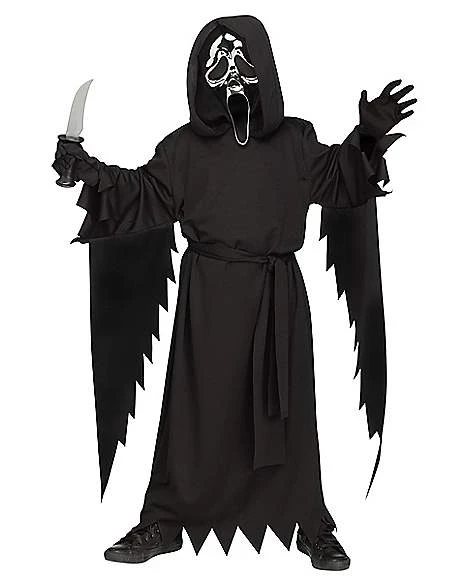 Make this a truly haunted, spooky Halloween when you dress up in this official Kids Chrome Ghost Face® costume! With its black hooded robe, Ghost Face® chrome mask and matching belt and gloves, you’re sure to scare up plenty of screams.
