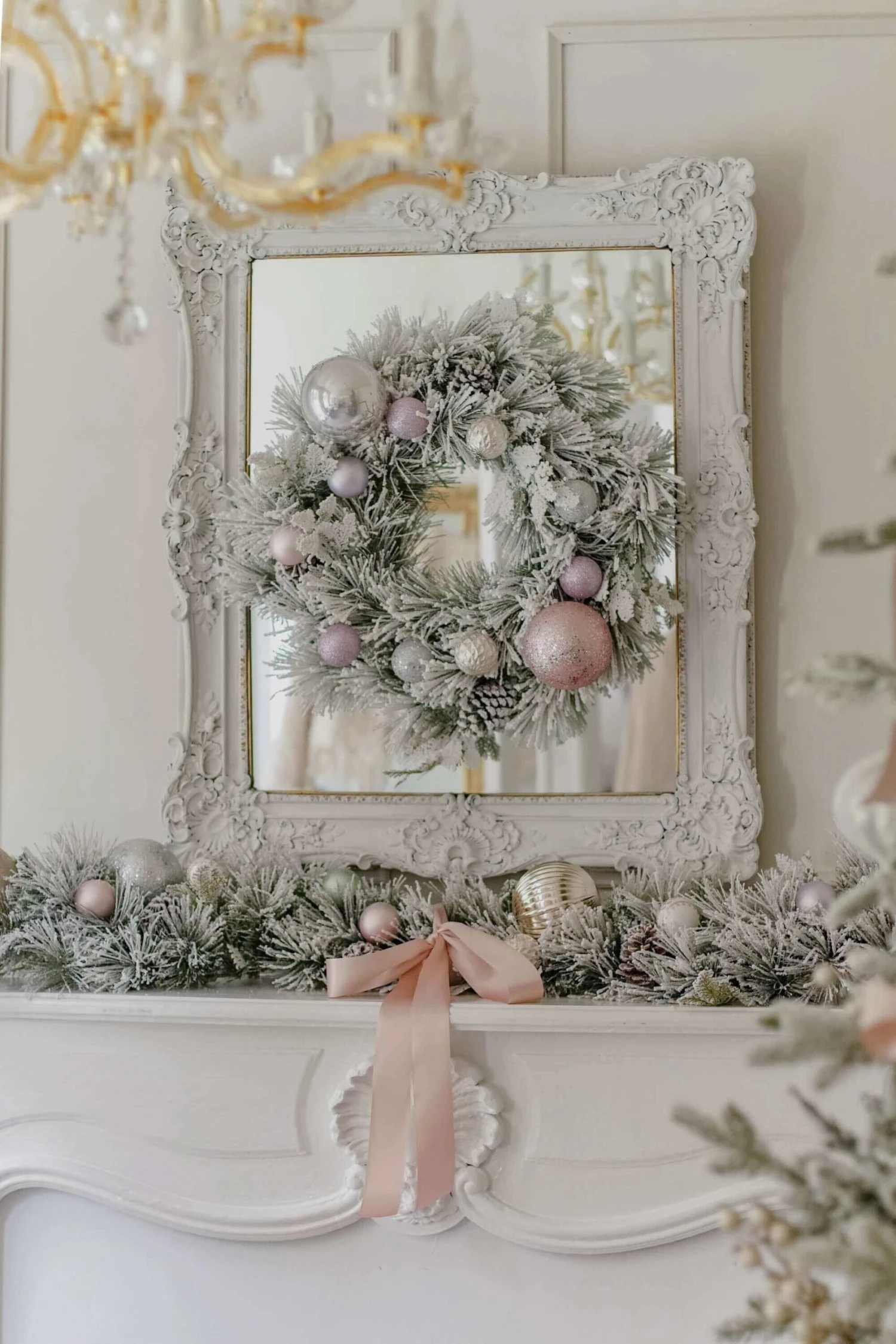 King Of Christmas 24″ King Flock® Wreath With Warm White LED Lights (Battery Operated)