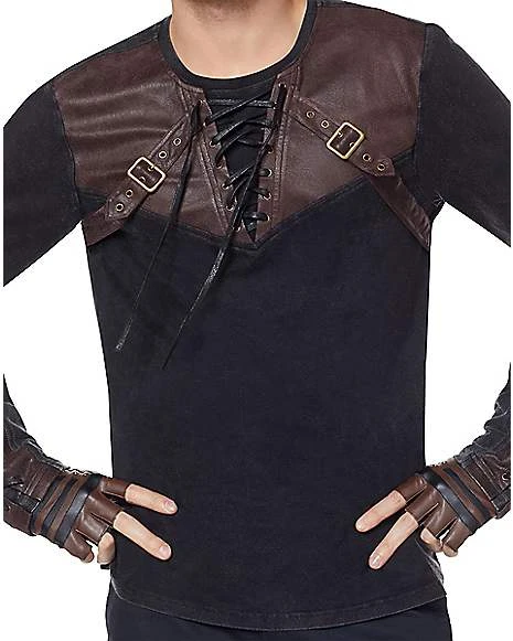 Lace up for a Halloween night of fantastical fun! Featuring a lace-up top accented with straps, buckles and laced sleeves, this soft cotton shirt is the perfect example of Steampunk style. Slip on this shirt and begin your sci-fi adventure!