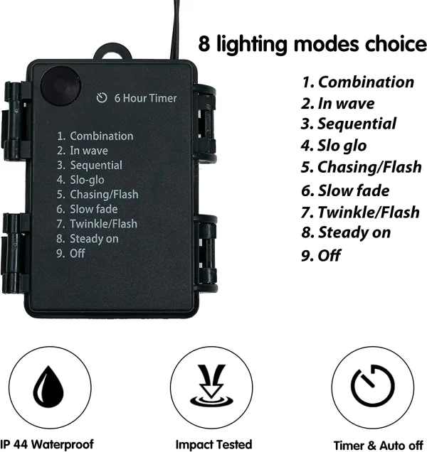 • Our wreath is pre-strung with 50 LED string lights (Battery Powered, Batteries not Included) which provide 8 lighting modes: Combination, In Wave, Sequential, Slow Glow, Chasing/Flash, Slow Fade, Twinkle/Flash & Steady on. Brighten your house and set off a great Christmas atmosphere with this eye-catching green wreath with lights! A wonderful Christmas front door wreath for festive winter in your home.