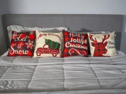 4Pcs Christmas Dining Chair Slipcovers With 2Pcs Handle Door Covers